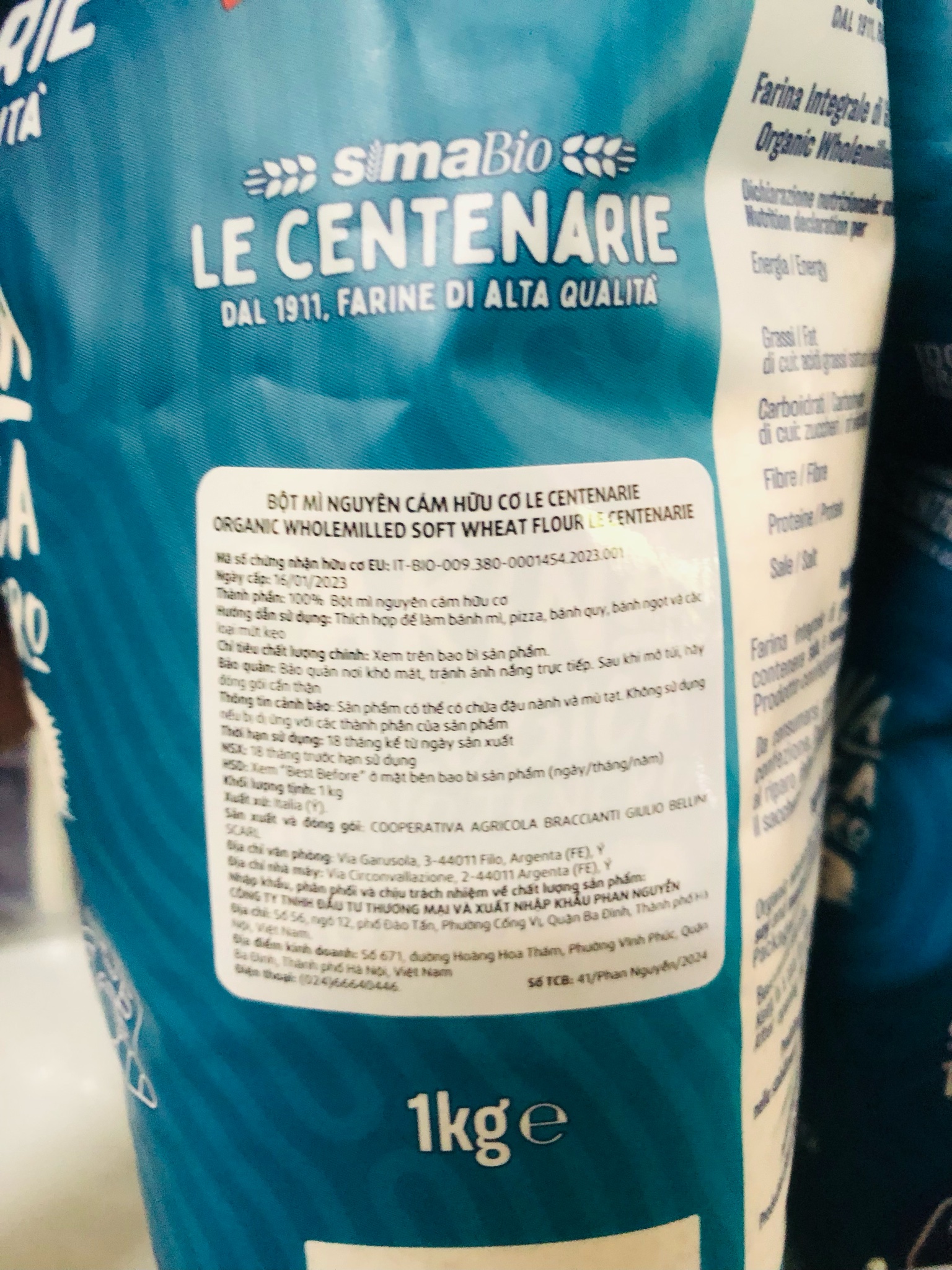 Thành phần: 100% Bột mì nguyên cám hữu cơ