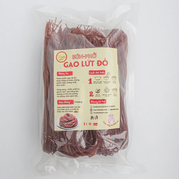 Thành phần: gạo lứt đỏ được trồng rự nhiên, không phẩm màu, không chất bảo quản.