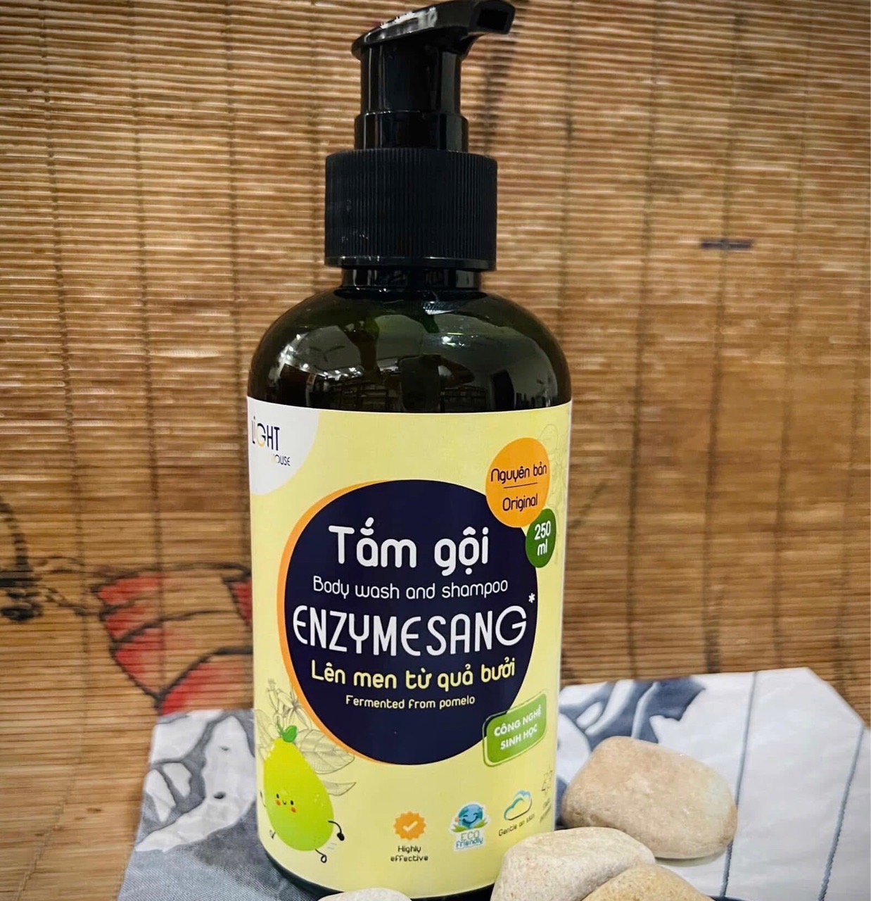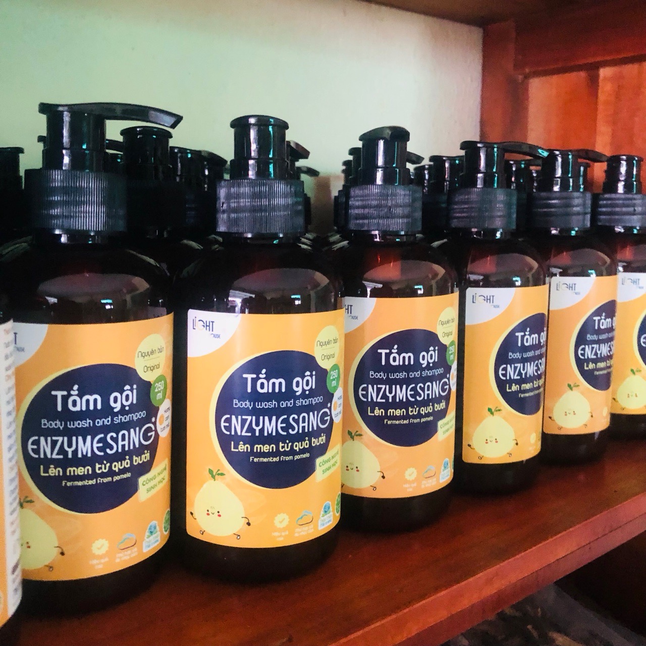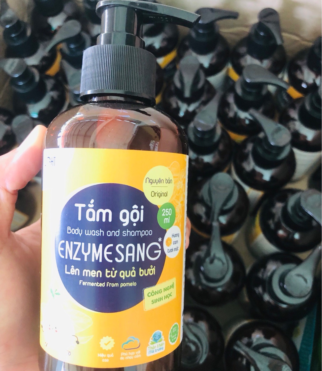 Thành Phần : nước quả bưởi lên men, chất tạo bọt tổng hợp từ dầu cọ, dầu dừa, muối, tinh dầu cam tự nhiên...