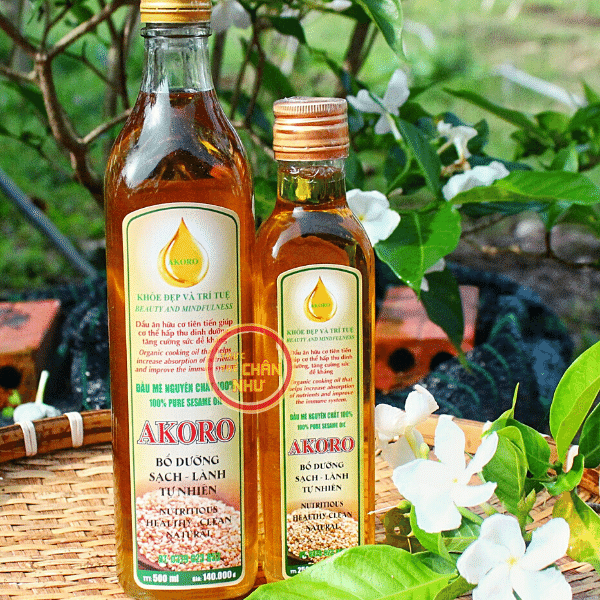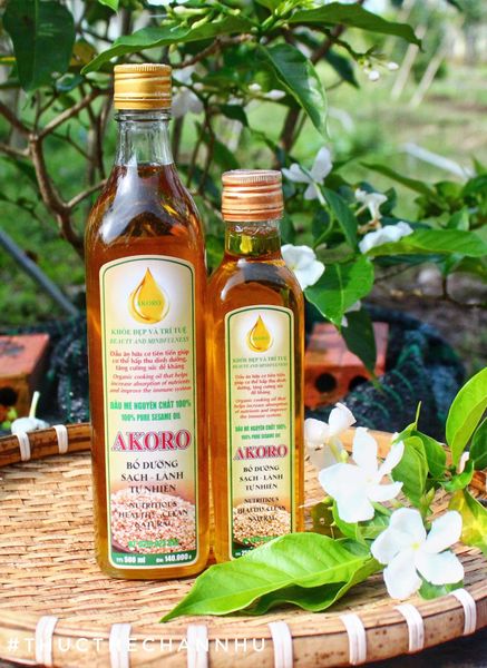 DẦU MÈ AKORO mang đến KHOẺ ĐẸP VÀ TRÍ TUỆ cho người dùng. - Hạt mè được ép thành Dầu mè mang đến sự tiện lợi và nhiều công dụng rất tuyệt vời mà căn bếp mỗi nhà cần phải có. - Thành phần dầu mè: 100% dầu mè hữu cơ được trồng tại Quỳnh Lưu, Nghệ An. Đặc biệt, chỉ sản xuất duy nhất vào 1 mùa mè trong năm.