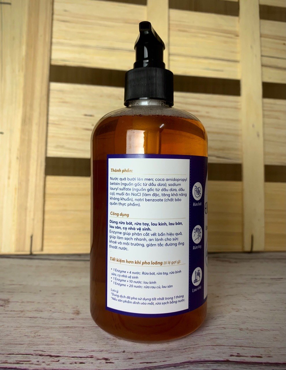 - 1 Enzyme + 4 nước: Rửa bát, rửa tay, cọ nhà vệ sinh.