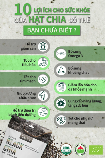 CÔNG DỤNG: - Hạt CHIA hay bị nhầm lẫn với hạt é ở Việt Nam bởi vì hình dáng và màu sắc hao hao nhau. Loại thảo mộc này được trồng chủ yếu ở Châu Mỹ (Mexico), Úc và có giá trị dinh dưỡng rất cao được dùng để bồi bổ sức khỏe cho cơ thể. - Vậy Hạt CHIA đen hay trắng tốt hơn? Chúng có giá trị dinh dưỡng tương đồng nhau các bạn ạ, cho nên tác dụng hạt chia trắng và đen tương đương nhau :