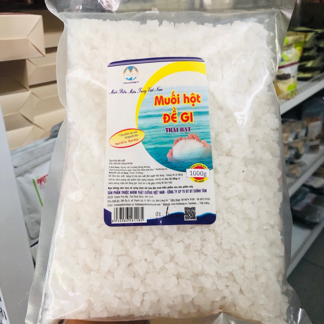 Muối được sản xuất từ Muối trải bạt (HDPE). Được sản xuất theo công nghệ nhà kính (muối có mái che kính),.. nước được lắng lọc tự nhiên, và qua tháp lọc thẩm thấu ngược.