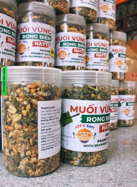 Thành phần: Lạc 60%, vừng trắng 22%, muối 2%, rong biển 4%, natto vàng 12% .