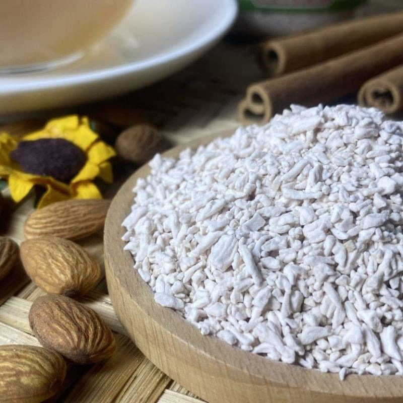 🍀 Cách dùng: Hòa một ít nước dưới 40 độ C với 10-20g tinh bột củ sen, sau đó rót nước sối 100 độ C vào và khuấy đều tay đến khi bột chín hoặc cho lên bếp quấy như bột sắn.